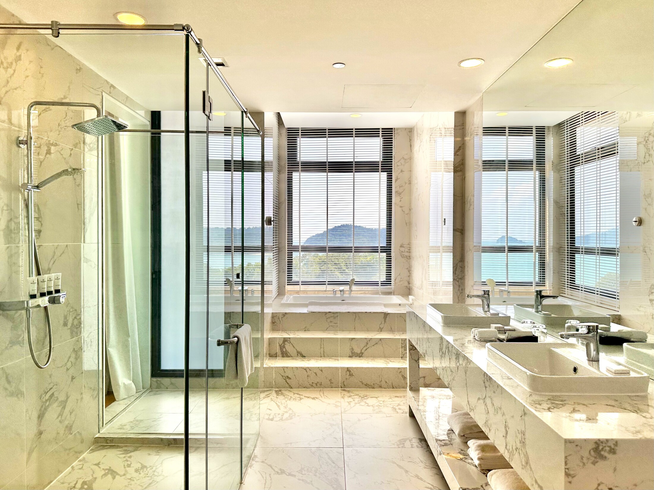 The expansive bathroom features premium fixtures and indulgent amenities for a spa-like experience at your own pace. Step onto your oversized private balcony to take in calming views of lush gardens or the vibrant city below.